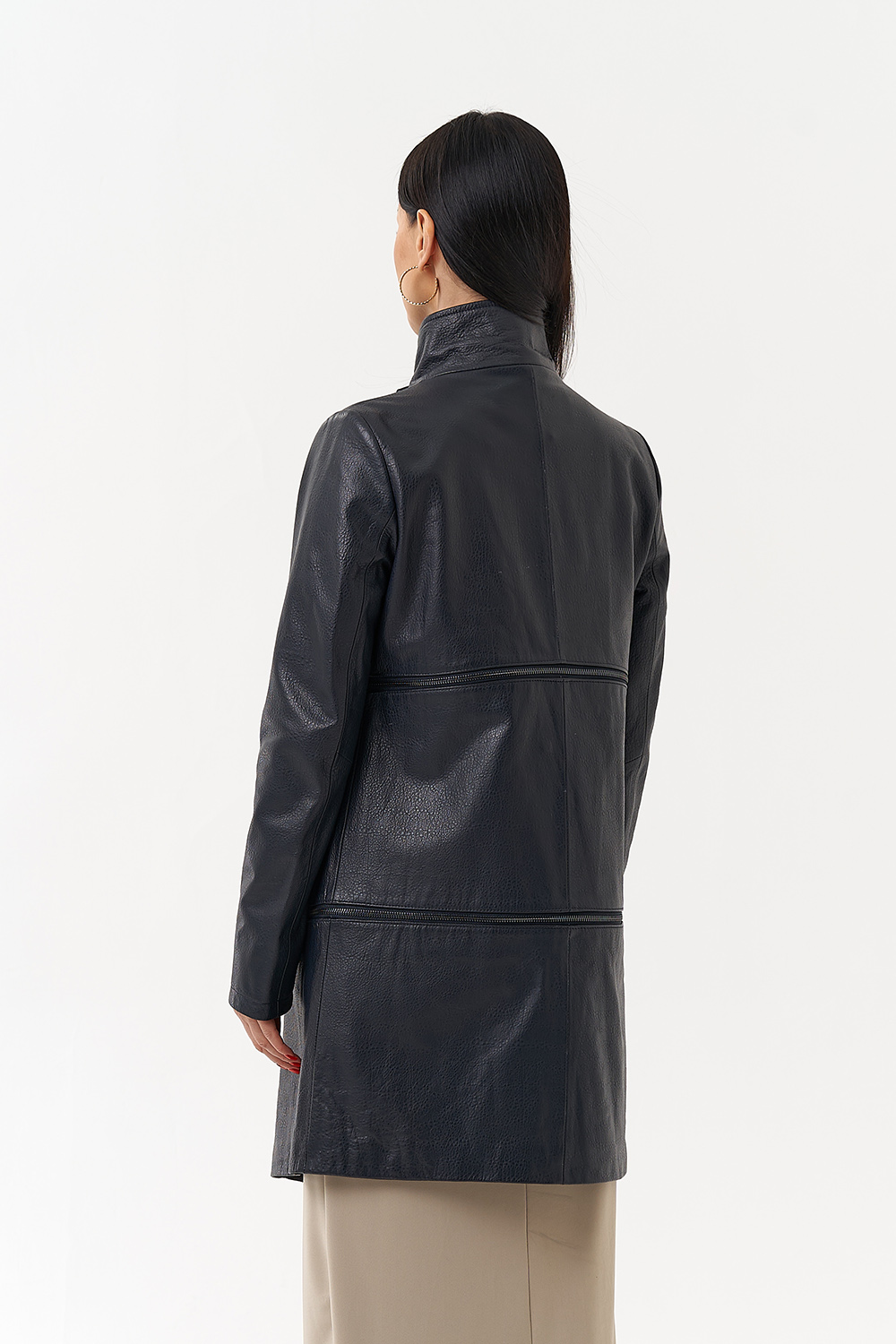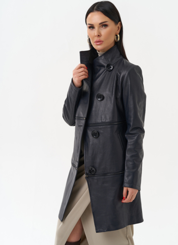 Плащ-трансформер из натуральной бараньей кожи в синем цвете в полуприлегающем фасоне. Подойдет для тех, кто любит перемены! Данное изделие можно носить в трех вариациях: укороченная кожаная куртка, классическая кожаная куртка и плащ. Акцентными деталями этой модели является ворот-стойка и большие пуговицы. Прочная и износостойкая кожа даст возможность сохранить ваше изделие на долгие годы, а количество вариаций образов с данной моделью позволит вам всегда оставаться в тренде.