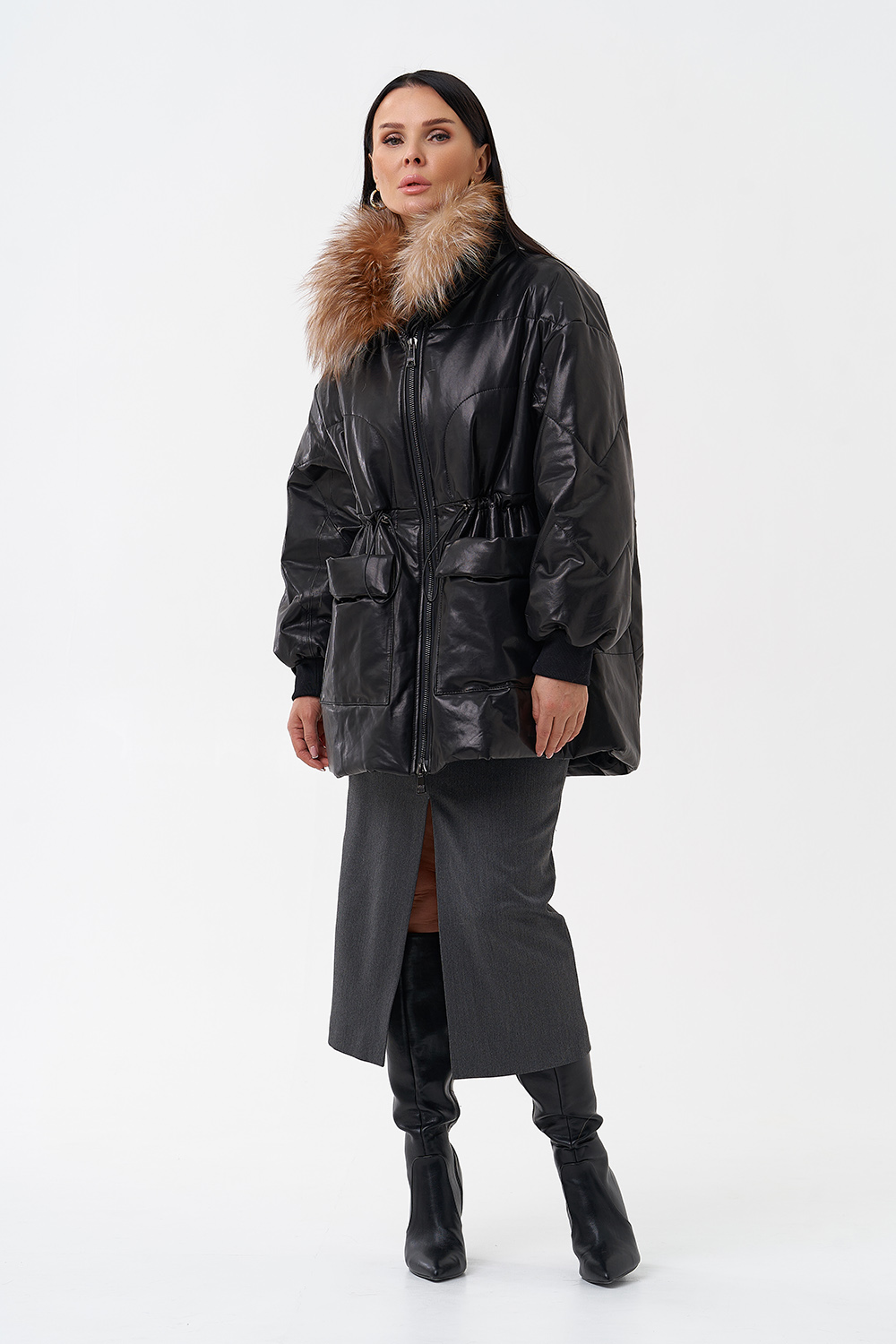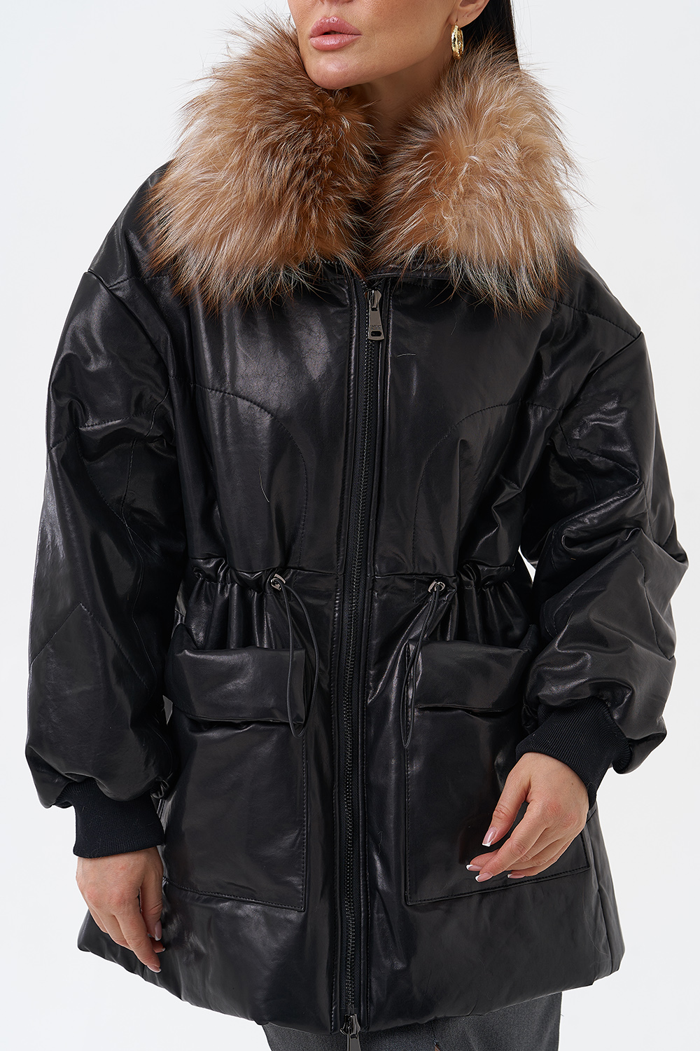 Утепленная кожаная куртка с песцом