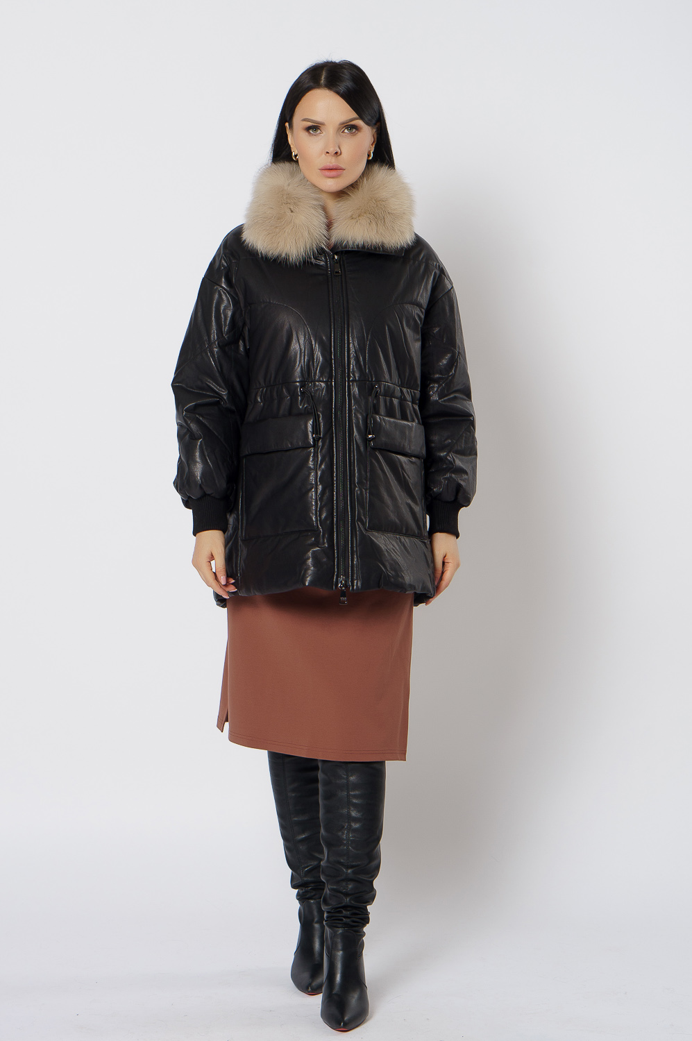 Утепленная кожаная куртка с песцом