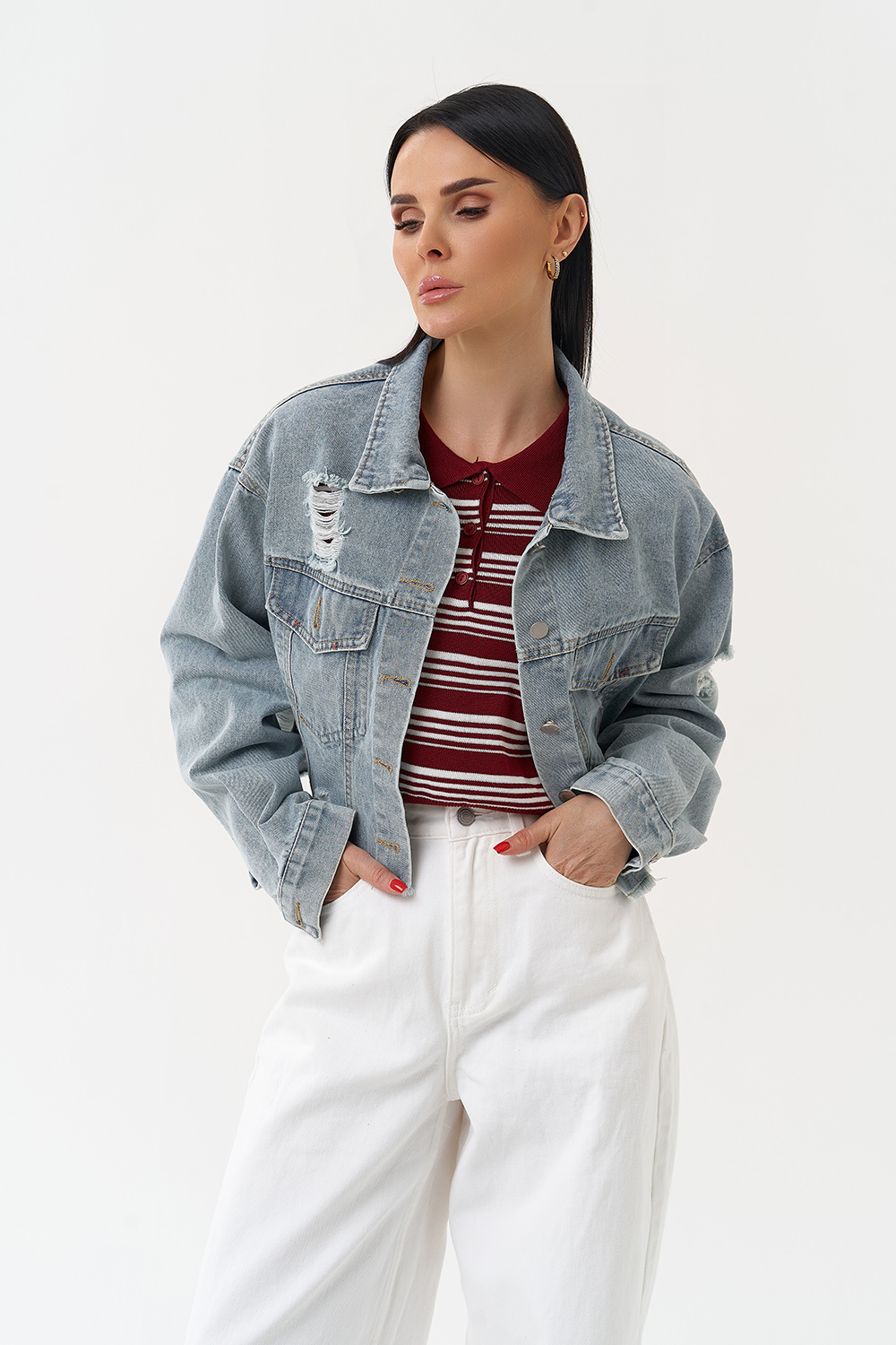 Женская укороченная джинсовая куртка артикул ceboksary30408 и другие товары категории Женские куртки демисезонные доступны в каталоге интернет-магазина Малина Сибериан в Чебоксарах по цене от 750 ₽. Ознакомьтесь с подробными характеристиками и описанием, а также отзывами о данном товаре и нашей компании. Делайте правильный выбор и заказывайте Женские куртки демисезонные онлайн.