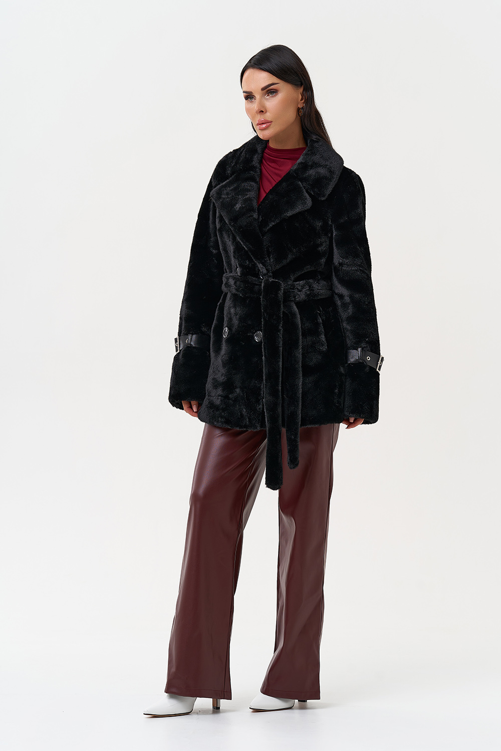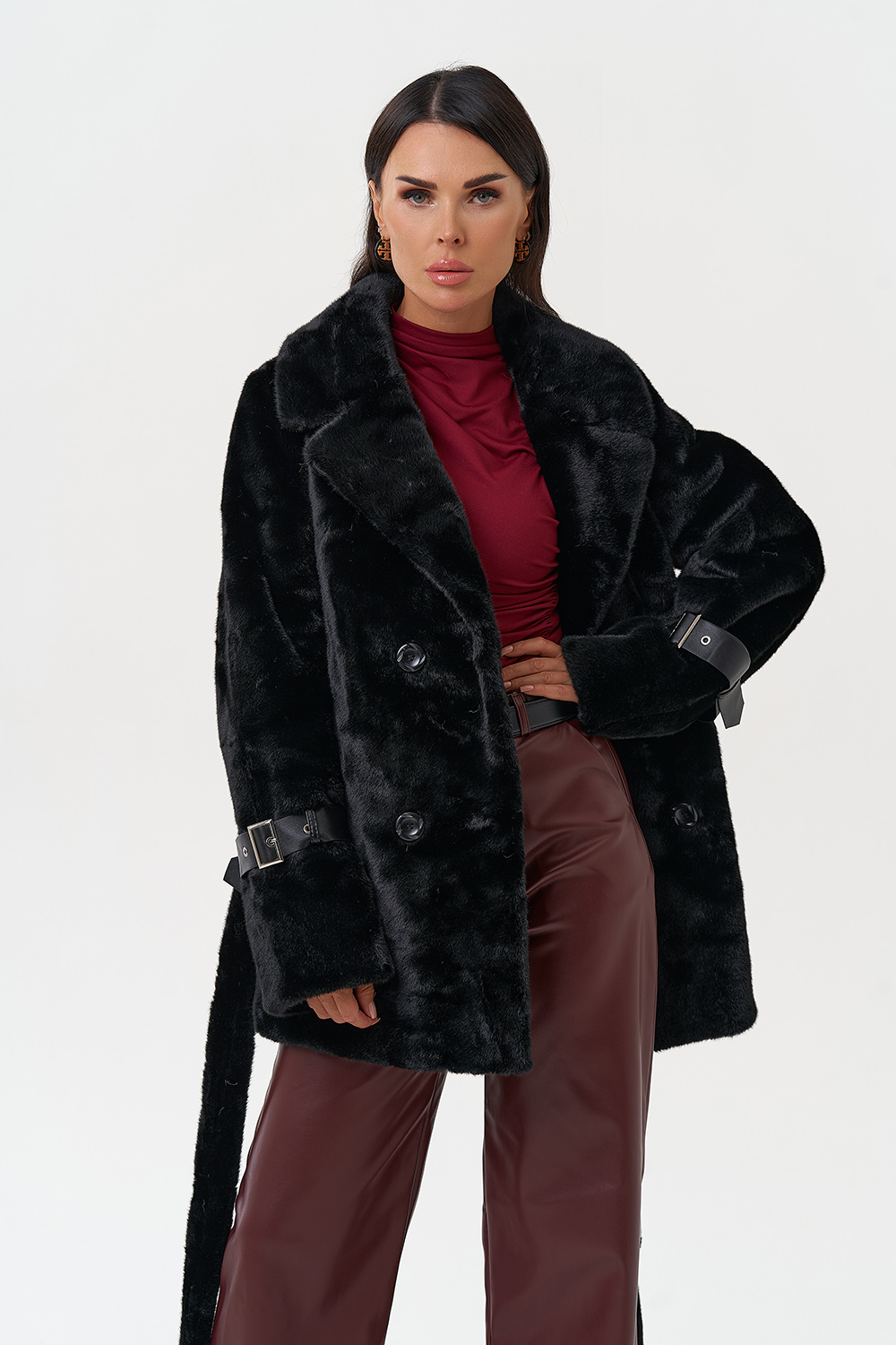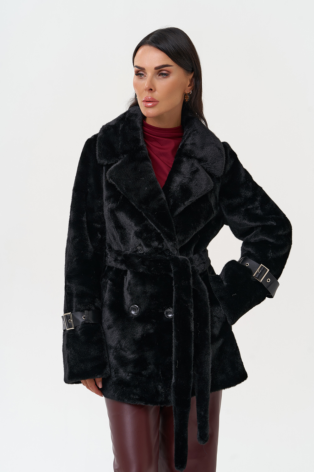 Фасон - прямой Длина изделия - 75 см Цвет - черный Материал - экомех Состав полотна - полиэстер 100% Подкладка - полиэстер 100% Вид застежки - пуговицы Вид ворота - английский воротник Фасон рукава - втачной, длинный |
